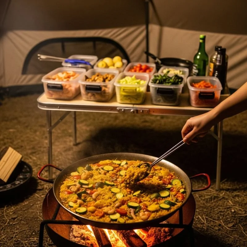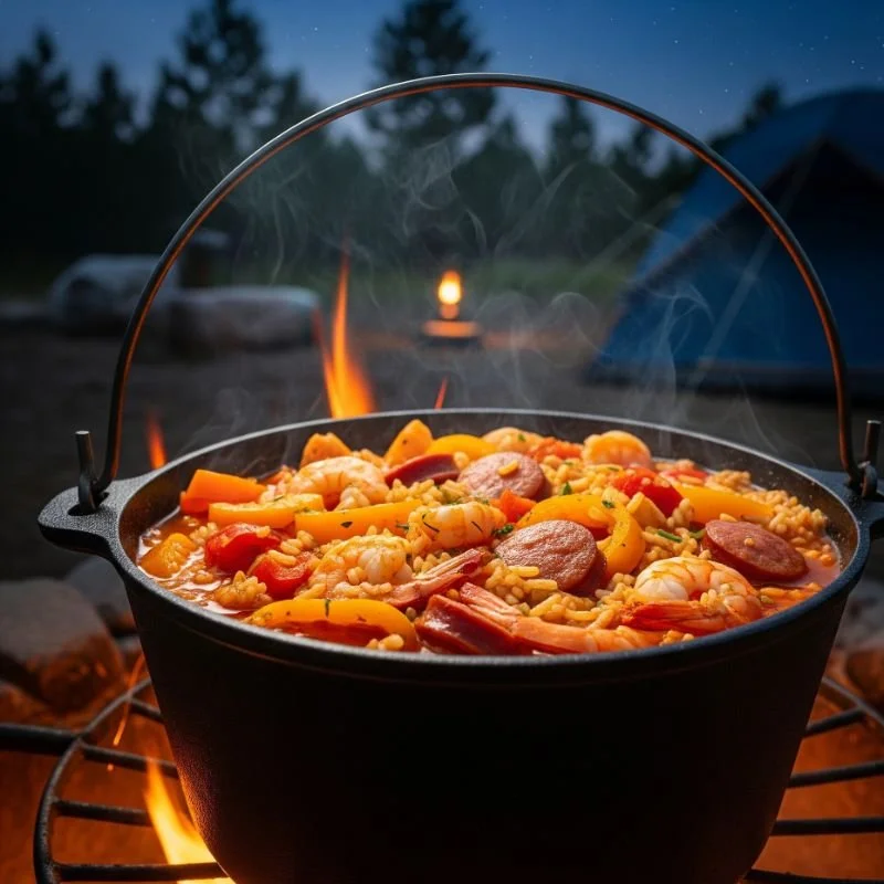 Channel Spanish coastal vibes with this simplified paella that maintains authentic flavor while eliminating fussy campsite prep work. The secret lies in strategic pre-trip preparation: measure saffron, paprika, and other spices into a small container; dice onions and peppers; and store protein options (chorizo, chicken thighs, and shellfish) in separate containers. At camp, place your largest, flattest pan over the fire and sauté the chorizo until it releases its flavorful oils. Add onions, peppers, and garlic, followed by short-grain rice that toasts in the rendered fat. Pour in your premixed spices and add chicken stock, then nestle in chicken pieces. The paella develops a crispy bottom layer—the coveted socarrat—as it cooks undisturbed. Add quicker-cooking seafood during the final minutes. I love how this one-pan wonder becomes the centerpiece of the campsite, drawing everyone around the fire as irresistible aromas waft through the air. The vibrant yellow rice studded with colorful ingredients creates a visual feast that matches the explosive flavors.
