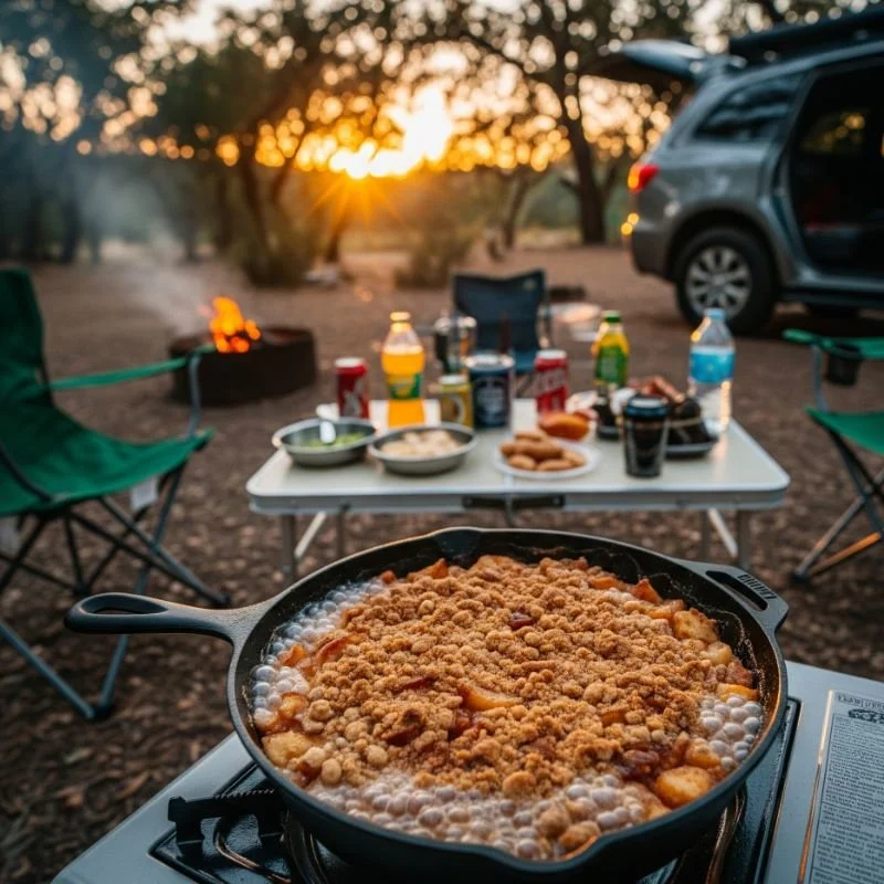 End your day under the stars with this deceptively simple dessert that combines fresh fruit with cleverly repurposed store-bought ingredients. Line a Dutch oven with parchment paper for easy cleanup, then add 4-6 cups of fresh berries or sliced stone fruits (whatever looks best at the market before your trip). Sprinkle with a little sugar and cinnamon, then top with an unexpected shortcut: refrigerated biscuit dough torn into pieces. Drizzle melted butter over the dough, then sprinkle with a cinnamon-sugar mixture. Cover and place over coals with additional coals on the lid to create even heating. After 30-40 minutes, the fruit bubbles into jammy perfection while the biscuit pieces transform into golden, fluffy dumplings with crisp tops and bottoms that have soaked up the fruit juices. I love serving this with a splash of cream or pre-packaged vanilla pudding for added decadence. The genius lies in using quality fresh fruit with convenient premade dough—a combination that yields results far exceeding the minimal effort required, proving that spectacular outdoor desserts don't demand baking expertise.