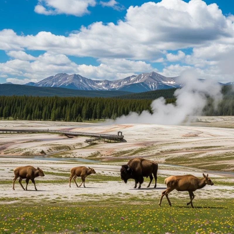 May transforms Yellowstone into nature's most spectacular nursery as the first month when most park roads typically open, revealing adorable wildlife babies against dramatic landscapes still showcasing remnants of winter snow. Unlike summer when wildlife retreats from roads and crowds, May creates perfect viewing conditions as new bison calves (nicknamed "red dogs" for their distinctive coloration), elk fawns, black bear cubs, and wolf pups make their first appearances in easily accessible meadows. The park achieves perfect ecological balance—thermal features appear most dramatic against occasional snow flurries, while rivers swell with snowmelt, making waterfalls like Lower Falls of the Yellowstone reach their thundering peak. I particularly value May's visitor experience—the park feels intimate and uncrowded compared to summer months, allowing spontaneous stops at wildlife sightings without traffic jams, while accommodations remain available without booking a year in advance. The weather creates its own magic through dramatic transitions—mornings might showcase frost-covered bison beside steaming geysers, while afternoons warm enough for comfortable hiking. This perfect alignment of wildlife activity, natural phenomena, and relative solitude creates Yellowstone's most rewarding month for visitors seeking authentic wilderness experiences before summer crowds arrive.