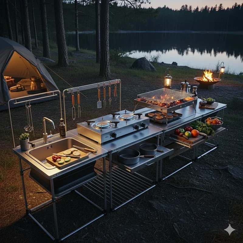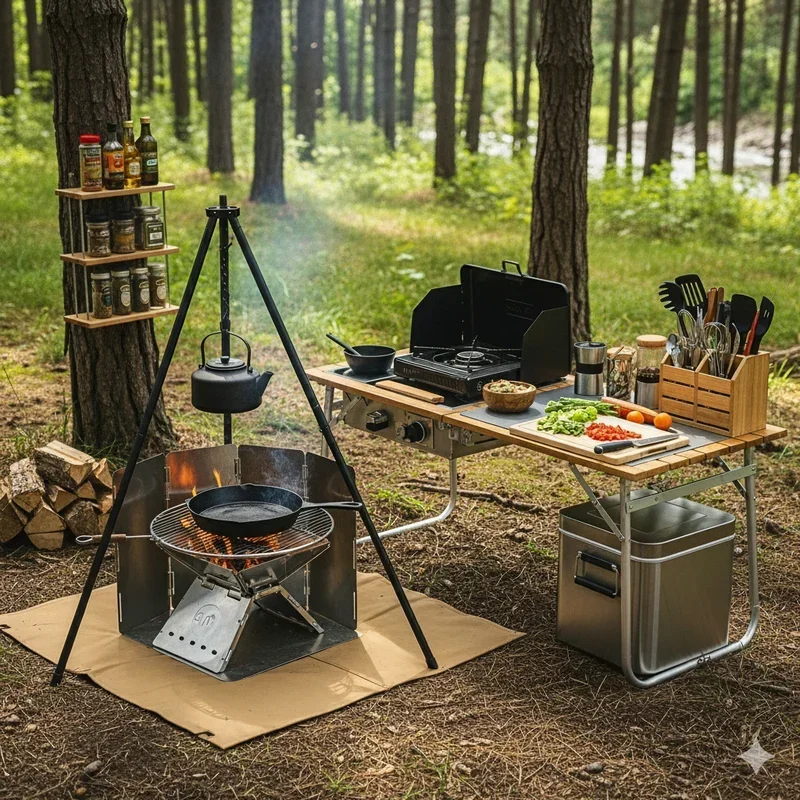 Remember that time you tried cooking bacon on a wobbly camp stove while juggling coffee mugs and searching for the spatula buried somewhere in your gear? Yeah, we've all been there. Camping cuisine doesn't have to feel like a survival challenge or leave you longing for your home kitchen. With the right setup and smart organization, outdoor cooking transforms into one of the most enjoyable parts of your adventure. Whether you're a weekend warrior hitting local campgrounds or a backcountry enthusiast venturing deep into the wilderness, these camping kitchen ideas will revolutionize how you prepare meals under the stars. From portable prep stations to clever storage solutions, you'll discover ways to create a functional outdoor kitchen that rivals your indoor setup. Ready to turn your campsite into a culinary haven.