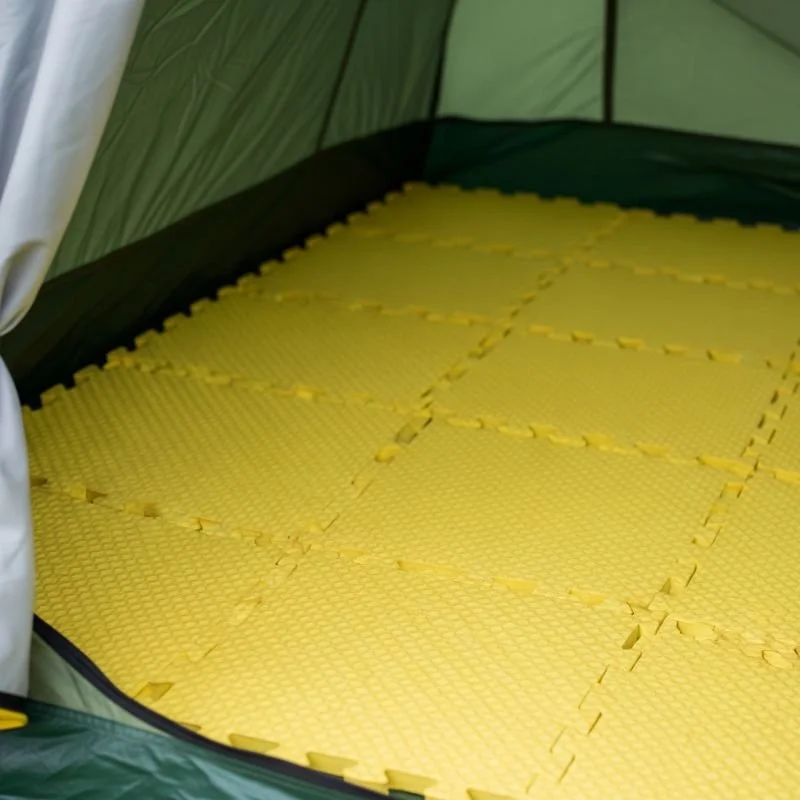 Say goodbye to feeling every rock and root through your tent floor with interlocking foam tiles that create instant comfort! Those exercise mats from discount stores work perfectly as tent flooring, providing insulation from cold ground and cushioning for better sleep. Cut tiles to fit your tent dimensions perfectly, creating a wall-to-wall carpet effect. The interlocking edges prevent shifting, while the waterproof surface protects against ground moisture. They're easier to clean than tent floors and add an extra barrier against punctures. In winter, the foam provides crucial insulation between you and frozen ground. When not camping, use them in your garage or kids' playroom. At about $1 per square foot, this comfort upgrade costs less than one night in a hotel!