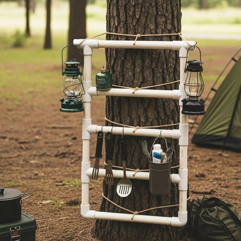 Build a customizable organization system using PVC pipes that transforms chaotic camping gear into neat, accessible storage! Create a freestanding rack with various diameter pipes to hold fishing rods, hiking poles, camp tools, and kitchen utensils. Use T-joints and elbows to design configurations that fit your specific needs and vehicle space. Drill holes in horizontal pipes to create toothbrush holders or utensil slots. Add end caps to create waterproof storage tubes for matches, batteries, or first aid supplies. The entire system breaks down for transport and reassembles in minutes without tools. Paint it bright colors for easy spotting in the dark. This $30 investment in hardware store supplies eliminates the frustrating gear hunt that wastes precious camping time. Organization never looked so good!