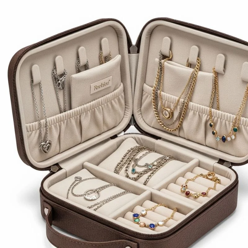 RFID-blocking jewelry cases might seem like overkill for traditional necklaces, but if you travel with smart jewelry or pieces with electronic components, this technology provides an extra layer of protection against digital theft.