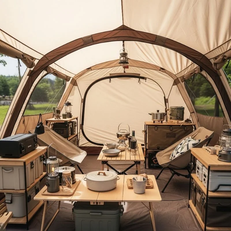 Add functional surfaces inside your tent with lightweight camping tables that create proper spaces for activities beyond sleeping. Folding tables provide surfaces for meal prep, card games, or working on devices, while bedside table alternatives keep nighttime essentials organized and accessible. Some innovative options include tent-pole-mounted trays, inflatable table surfaces, or multi-level organizers that combine storage with usable surface area. Having dedicated surfaces prevents the constant juggling act of trying to balance items on sleeping bags or the ground. It civilizes tent living, making activities like journaling, planning the next day's adventure, or enjoying morning coffee much more pleasant. Your tent evolves from a bedroom into a functional living space where you can comfortably pursue various activities.