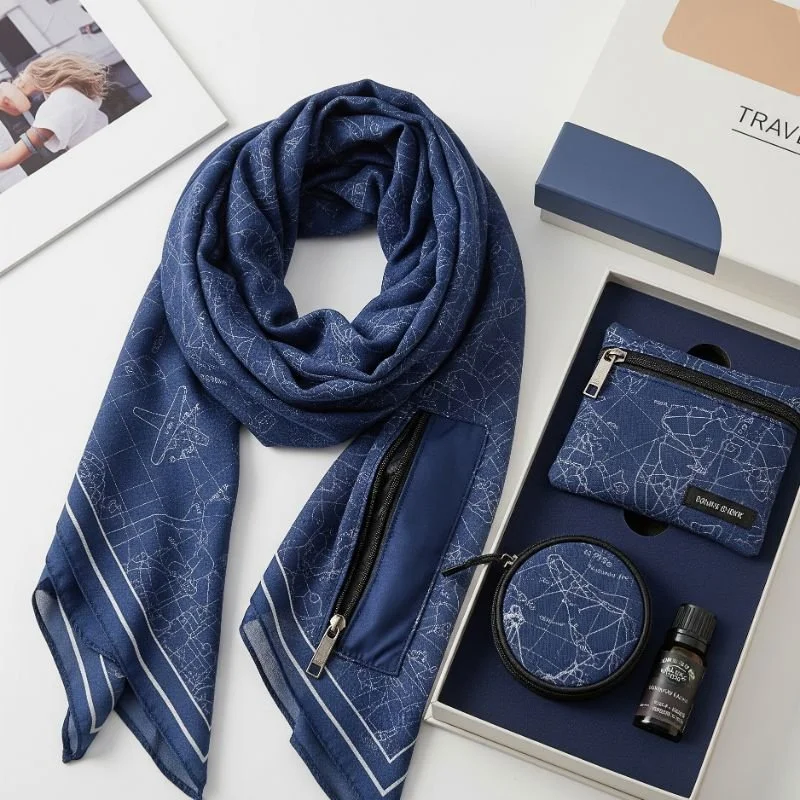 This deceptively simple accessory combines everyday style with ingenious security features through discreetly integrated zippered pockets large enough to hold a passport, credit cards, and emergency cash. Unlike obvious money belts or neck pouches that mark wearers as tourists, these scarves appear identical to fashionable accessories while creating a virtually pickpocket-proof storage solution for valuables. Beyond security benefits, these versatile pieces perform multiple travel functions: lightweight blankets during chilly flights, modest shoulder coverings for visiting religious sites, makeshift pillows during transit delays, and stylish outfit enhancers that minimize the need for additional accessories. I particularly appreciate versions made from temperature-regulating fabrics like merino wool or technical blends that resist wrinkles and odors through multiple wearings. The brilliance of this gift lies in its problem-solving versatility—it simultaneously addresses security concerns, packing minimalism, and style maintenance in various cultural contexts. For maximum gift impact, select a neutral color and weight appropriate for her typical destinations—lighter fabrics for tropical travelers, warmer materials for those visiting variable climates.